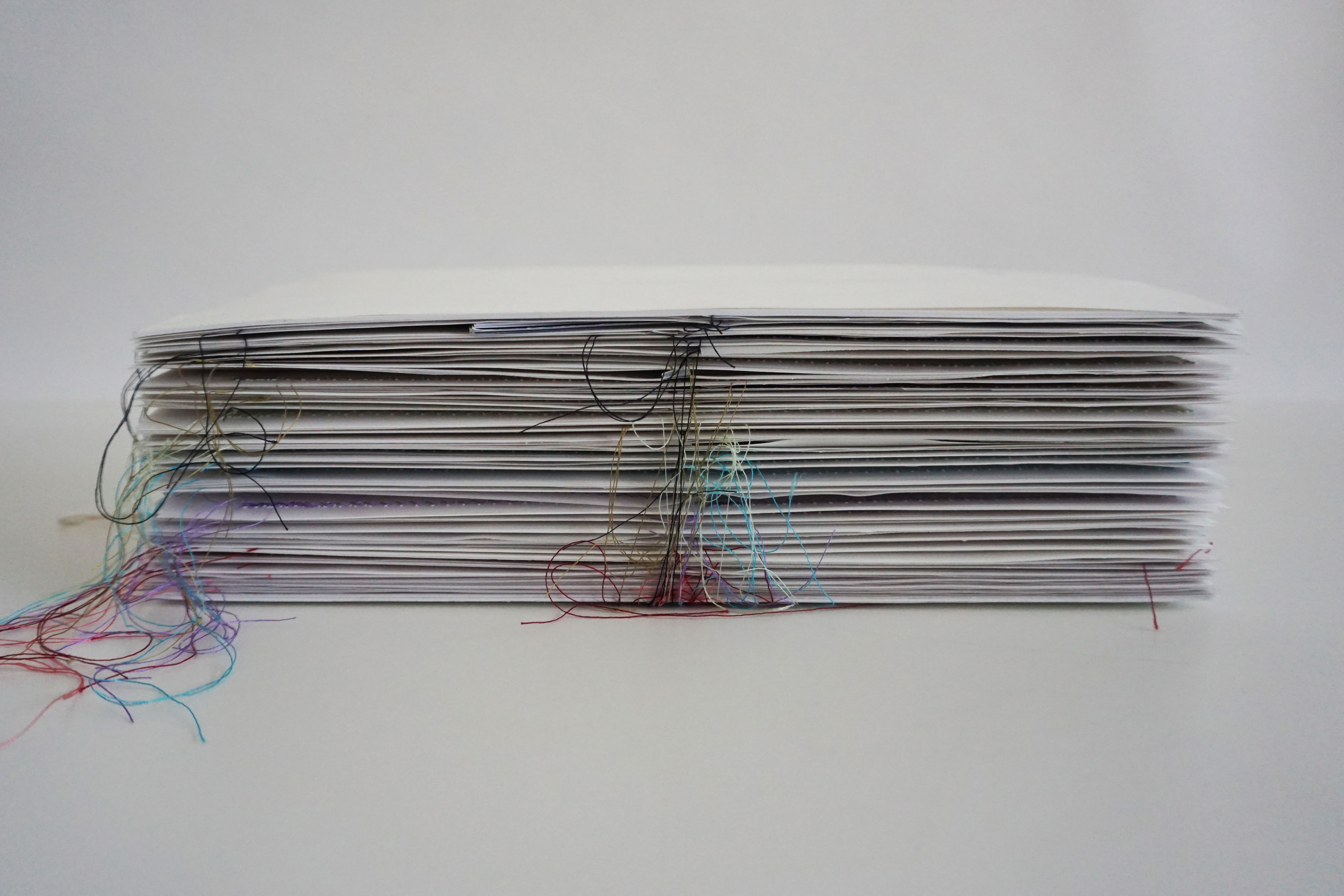 Brieven, papier, garen, zijde, 225 x 320 x 120 mm.